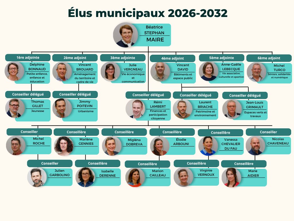 Le maire est entouré d’adjoints et de conseillers municipaux délégués à qui il délègue une partie de ses fonctions. Chacun s’occupe d’un ou plusieurs domaines de compétences.